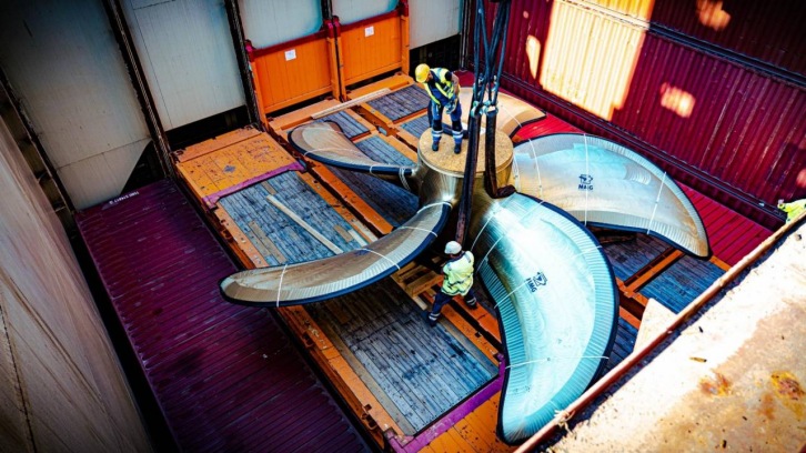 • Fleet Upgrade Program for more than 150 ships within the next 5 years • Lower fuel consumption to reduce the fleet's CO2 emissions 23 August 2022 With the loading of the first retrofit propeller in the Port of Hamburg, Hapag-Lloyd is launching its comprehensive Fleet Upgrade Program. The goal is to technically modernise the existing fleet. The propeller, which has been optimised for energy efficiency by the German manufacturer MMG, will be installed on Hapag-Lloyd's 7,500 TEU "Ningbo Express" in Dubai in September. As a result, the ship saves between 10 and 13 per cent fuel and CO2 emissions, depending on the sailing condition. In total, there are plans to equip at least 86 ships with the new and more efficient propellers. At the same time, 36 vessels will receive a new, flow-optimised bulbous bow. During the scheduled dry dock stays, a resistance-reducing coat of anti-fouling paint will also to be applied to all vessels on the part of the exterior hull beneath the waterline. Most of the measures will be carried out by 2025 and make a significant contribution to helping the company to achieve its climate targets. "We aim to be climate-neutral by 2045. To reach this goal, we have set ourselves the interim target of reducing the CO2 intensity of our own ships by 30 per cent already by 2030. To do so, we are investing in new future-proof ships while simultaneously focusing on making our existing fleet fit for the future. The Fleet Upgrade Program will boost the energy efficiency of the entire fleet," says Dr. Maximilian Rothkopf, COO of Hapag-Lloyd AG. The investment volume of the Fleet Upgrade Program will be in the three-digit million range. Together with the €2 billion order for 12 LNG ships placed two years ago, this large-scale measure demonstrates that Hapag-Lloyd is rigorously investing in sustainable, competitive ship operations for the long term.