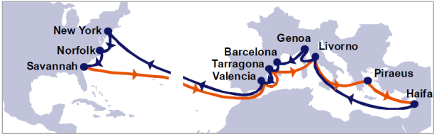 The new Mediterranean – US East Coast Service (MES) is operated in cooperation with ZIM. Subject to the final FMC approval, the service is scheduled to commence in the 3rd quarter 2014.