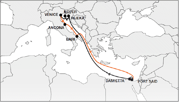 The new call at Bari on our ADX service emphasizes Hapag-Lloyd’s strength within the Mediterranean Sea, offering now a very extensive coverage of the Southern Italy commercial area and connecting it with the global Hapag-Lloyd network via transhipment at Damietta and Port Said:
