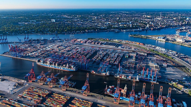 Aerial view of HHLA Container Terminal Burchardkai in Hamburg. Image by HHLA / Martin Elsen HHLA Hamburger Hafen und Logistik AG