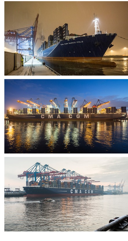 To boost the performance of the CTB and develop its capacities in line with demand, Hamburger Hafen und Logistik AG (HHLA) has invested some € 400 million in its largest terminal over the last few years. One focus was on the modern mega-ship berths with tandem gantry cranes that can load or discharge four 20-foot containers or two 40-foot containers in a single movement. “We have specifically prepared the Burchardkai for handling the latest generation of container mega-ships. Continuous innovation and the great dedication of our staff keep our terminals at the top of the European rankings,” added Dr. Behn. “The Port of Hamburg is an attractive hub for the really big ships, as is now shown by the first visit of a 16,000 TEU vessel. To ensure that it can fulfil this key function even better in the future, I am hoping for a swift decision from the Federal Administrative Court on the start of work to dredge the shipping channel,” explained Claudia Roller, CEO Port of Hamburg Marketing. Roller observes a growing number of Ultra Large Vessels in the Port of Hamburg. In 2011, vessels with a length of more than 330 metres and/or wider than 45 metres called 894 times at the port. The new container ships are not only impressive for their sheer size, but also for their sophisticated environmentally friendly technology. The CMA CGM Marco Polo has a twisted leading edge rudder which improves the hydrodynamics of the vessel and so reduces energy consumption and CO2 emissions. Its electronically controlled engine consumes an average of 3 percent less fuel and 25 percent less lub oil. The optimised hull design reduces energy consumption even further. Ships such as these increase the ecological quality of the transport chain – even more so when they sail far inland and their cargo is then transported by feeder ships or rail to the European hinterland. With feeders accounting for a high 25 percent of seaborne handling and a rail share of more than 70 percent in land-based long-distance traffic, the HHLA container terminals in Hamburg build ecologically outstanding transport chains. Hamburg’s land routes towards Central and Eastern Europe are also 250 to 450 kilometres shorter than for the westerly ports in the North Range. This gives the Port of Hamburg and its hinterland a clear advantage over Rotterdam and Antwerp in ecological and economic terms. The maritime logistics chain via Hamburg avoids hundreds of thousands of truck journeys every year, noticeably reduces congestion on the roads, which makes them safer, and reduces noise and greenhouse gas emissions. To illustrate, the 16,020 TEU capacity of the CMA CGM Marco Polo would equate to a line of heavy goods vehicles around 138 kilometres long. However, this ship cannot currently enter or leave the Port of Hamburg fully laden because of the continuous delays to the dredging of the river Elbe. This means that in the interim, the Port of Hamburg’s ecological and transport potential cannot be exploited to the full. HHLA Hamburger Hafen und Logistik AG |
