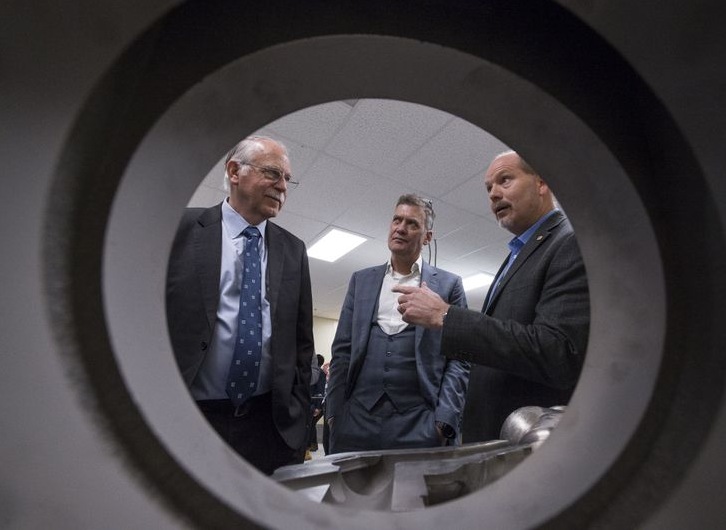 Newport News Shipbuilding (NNS) - May 10, 2018 Huntington Ingalls Industries (NYSE:HII) announced today that its Newport News Shipbuilding division has partnered with 3D Systems to develop additive manufacturing technologies expected to accelerate the adoption of metal 3-D printing in the naval shipbuilding industry. Chuck Hull, Kevin McAlea and Charles Southall discuss how Newport News Shipbuilding plans to use additive manufacturing technology to produce parts for future warships. Hull is the inventor of stereolithography and co-founder of 3D Systems; McAlea is 3D Systems’ executive vice president and general manager, metals and healthcare; Southall is Newport News’ vice president of engineering and design. Photo by John Whalen/HII The joint effort is expected to support future qualification and certification programs necessary to implement this advanced manufacturing technology for the U.S. Navy and further revolutionize how shipbuilders build the next generation of warships. It is also part of a significant technological transformation underway at Newport News called integrated Digital Shipbuilding (iDS). “This is a game-changing and disruptive technology for our industry,” said Charles Southall, Newport News’ vice president of engineering and design. “In addition to our ongoing digital shipbuilding efforts, 3-D printing could transform our design standards, and this technology has the potential to be one of the most significant manufacturing innovations in our industry since we began building nuclear-powered ships in the 1950s.” As part of the joint development agreement, 3D Systems delivered and installed the ProX DMP 320 high-performance metal additive manufacturing system at Newport News. The state-of-the-art machine is capable of making three-dimensional, marine-based, alloy parts for castings or other fabricated parts, such as valves, housings and brackets. “3D Systems is pleased to play an integral role in transforming the naval shipbuilding industry,” said Kevin McAlea, executive vice president and general manager, metals and healthcare, at 3D Systems. “The ProX DMP 320 printer system, combined with our team’s expertise in metal 3-D printing technology, will bring new digitally enhanced geometries to Newport News Shipbuilding, enabling higher performing warship components and ultimately more efficient cost-effective parts delivery to the U.S. Navy.” The partnership represents a significant step forward in the fabrication of components and material for future warships. Compared to traditional manufacturing methods that involve the conversion of raw materials into a finished product through subtractive processes, such as cutting or grinding metal, additive manufacturing involves the layer-by-layer fabrication of raw materials into a finished product. “One of our goals is to provide leadership to our supplier base that will help accelerate the adoption of additive manufacturing within our industry, which may improve efficiencies and quality,” Southall said. “We look forward to working with key technology leaders, such as 3D Systems, to help to break down technology adoption barriers and advance additive manufacturing in our industry and supply chain.”