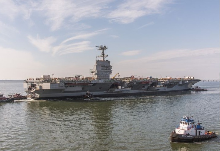 Newport News, Va. - Dec. 17, 2019 Nine days after christening the U.S. Navy’s newest nuclear-powered aircraft carrier, Huntington Ingalls Industries' (NYSE:HII) Newport News Shipbuilding division launched John F. Kennedy (CVN 79) into the James River for the first time, on Monday. With the aid of six tugboats, Kennedy was guided down the river about a mile from Newport News Shipbuilding’s Dry Dock 12, where it has been under construction, to the shipyard’s Pier 3. There, the ship will undergo additional outfitting and begin its testing program three months ahead of its original schedule. “This move is significant in that it represents a shift in focus from erecting the ship in dock to final completion and outfitting at the pier,” said Mike Butler, program director for Kennedy. “It is also a testament to the amazing teamwork I see every day between Newport News Shipbuilding and the Navy as we work together to build Kennedy with valuable first-of-class lessons from the Ford.” During this phase of construction, which is expected to take about two and a half years, habitability spaces, such as berthing and mess areas, will be completed, and distributive, mechanical and combat systems, such as catapults and radar arrays, will be tested. Kennedy is scheduled for delivery to the Navy in 2022.