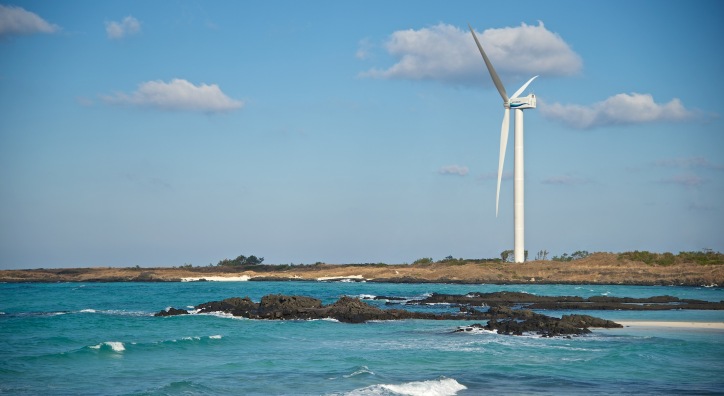 Hyundai Heavy’s 5.5 MW Offshore Wind Power Turbine Installed on Jeju Island. Image by Hyundai Heavy Industries. Hyundai Heavy Industries, press release |