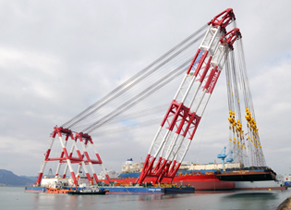27 February 2015 Hyundai Heavy Industries Co., Ltd. (HHI), the world’s biggest shipbuilder and a leading offshore facilities contractor, today announced its shipbuilding affiliate, Hyundai Samho Heavy Industries, completed a 10,000 ton heavy lift vessel (HVL), Hyundai-10000, at its shipyard in Yeongam, South Korea. After a series of final tests, the HVL will join HHI’s existing offshore facility-building infrastructure in Ulsan in March and begin operation from April this year. The vessel equipped with 8 double truss jib cranes measures 182 m in length, 70 m in width and 11 m in depth. With the addition of HLV, HHI’s maximum lifting capacity per module will increase more than six-fold from 1,200 tons to 8,000 tons. With the new HLV, HHI can install bigger modularized blocks built on-ground onto offshore facilities at a time, and therefore minimize the potential risks of working at height. As the global offshore market has been seeing an increase in the size of facilities, the addition of the mega-sized floating crane can help HHI reduce construction time of a variety of offshore structures the company builds, bringing about 24 billion Korean won ($21.9 million) in cost reduction each year to HHI. Upon delivery, the heavy lift vessel will be used to build 19 offshore projects including Q204 FPSO for BP at HHI’s offshore yard in Ulsan, South Korea. Hyundai Heavy Industries, press release |