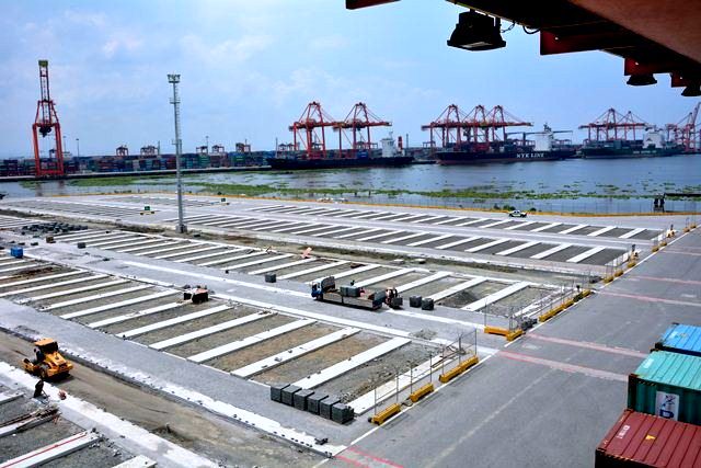 Monday, Oct 12, 2015 Manila International Container Terminal Services (MICT) is set to finish the first stage expansion of Yard 7 before the year ends. Upon completion, Phase 1 development will increase the terminal’s existing import capacity by 18 percent. The additional storage will be a key to optimizing terminal utilization. Pending the completion of the yard expansion, MICT has rolled out its Terminal Appointment Booking System (TABS) ahead of the anticipated increase in container movement in the months leading to the holiday season. Through these projects, MICT strives to provide better and more secure services to its loyal customers. Photo shows construction progress at Yard 7 of the Manila International Container Terminal.