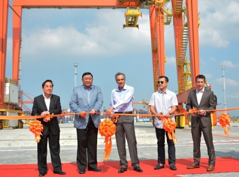 Thursday, Nov 26, 2015 International Container Terminal Services, Inc. (ICTSI) inaugurated today, 26 November 2015, Yard 7 of the Manila International Container Terminal (MICT) including the commissioning of four new rubber tired gantries (RTG). Part of MICT’s PhP5 billion expansion project, Yard 7 adds substantial capacity to the terminal now at 2.75 million TEUs from 2.5 million TEUs. This not only addresses the current demand of shipping line clients and the port community for terminal services but also of anticipated growth. Photo shows ICTSI and government officials during ribbon-cutting ceremonies marking the start of operations of Yard 7 (from left): Juan Sta. Ana, Philippine Ports Authority general manager; Cabinet Secretary Jose Rene D. Almendras; Enrique K. Razon Jr., ICTSI chairman and president; Manila Vice Mayor Francisco Domagoso; and Christian R. Gonzalez, ICTSI senior vice president and head of Asia Pacific Region and MICT. Behind them are two of the four RTGs. About MICT In 1988, International Container Terminal Services, Inc. (ICTSI) won the 25 + 25 years concession to operate the Manila International Container Terminal (MICT) in an international tender. Since ICTSI’s takeover, MICT has increased its annual capacity five-fold, expanded its container handling fleet to make it the largest and most modern container terminal in the Philippines, and switched from a manual control system to an integrated real-time IT terminal control system. MICT is ICTSI’s flagship operation. (www.mictweb.com.ph) International Container Terminal Services, Inc., press release |