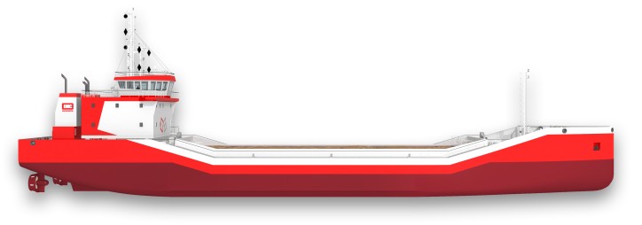 The main focus of the new Omnibarge's design lies in providing the customer with the lowest possible cost per tonne per transported mile. It combines the renowned robustness of this vessel with a new optimised hull shape. Detailed CFD analysis and extensive basin trials at the Marin Research Institute have resulted in a 15% improvement in fuel consumption – compared to other modern reference vessels – while maintaining the durability of the hull shape.