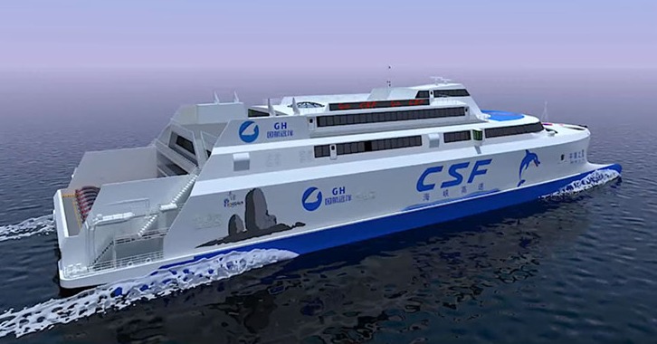 01 Mar 2019 Incat Crowther is pleased to announce a project to design a 1000-passenger high speed ro-pax ferry to operate between mainland China and Taiwan. To be built by AFAI Southern Shipyard, the Incat Crowther 113 design will be operated by Fujian Strait Shipping Co (CSF) between Pingtan Island and the Taiwanese cities of Taichung, Taipei and Kaohsiung. The high speed ro-pax ferry will have two vehicle decks, capable of carrying 230 cars or 42 containers. The resiliently mounted passenger cabin will have seating for 1000, in a mix of economy and business class. Amenities include a duty-free store, café and mahjong room. The vessel will be powered by four MTU 20V8000 M71L main engines, each producing 9100kW @ 1150rpm. Propulsion is by four Rolls Royce water jets, with power transmission via ZF gearboxes. Auxiliary power is provided by Caterpillar gensets. Incat Crowther is a proven world leader in fast ferry design and pleased to expand their cooperation with China’s leading aluminium shipbuilder AFAI Southern Shipyard.The Fujian Strait Shipping Co (CSF) vessel will be the largest aluminium ship built in China, and when in operation, will promote the further cross Taiwanese Strait public and economic exchange.