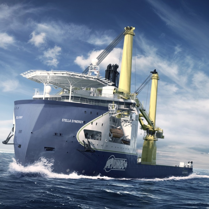 18 April 2018 This week Jumbo announced the winner of the competition to name our new DP2 Heavy Lift Crane Vessel (HLCV) to be delivered in the first quarter of 2020. Last month we launched an internal naming competition so that all Jumbo employees from around the world could submit up to three vessel name entries. Having received over 250 entries, Michael Kahn with the competition committee made a top 3 list and then chose one overall winning name: Stella Synergy. Michael Kahn says: “Stella Synergy is a beautiful name that captures the many elements of the Jumbo spirit – It symbolises Jumbo 50 years ago when we started as pioneers in the heavy lift industry with our first ‘Stella’ vessel. It also symbolises the complementary relationship between today’s shipping and offshore divisions, as well as the cooperation of the two families, namely Borchard and Kahn. Most of all, Stella Synergy symbolises what we strive to achieve when we work together with our clients and as a team.‘’ The winning name was entered by Mr. Jiovanni Pardillo who has worked with Jumbo as an AB crew member since 2006. Michael Kahn telephoned Jiovanni in the Philippines to wish him congratulations personally and to inform him that he will receive a cash prize of 2,500 euros. This figure refers to the 2,500t lifting capacity of the main crane on the new vessel. A model of Stella Synergy will be on display at the upcoming OTC exhibition in Houston 30 April – 03 May 2018. For enquiries please contact Jumbo Corporate Communications: media@jumbomaritime.nl SIMPLY SMARTER - VESSEL This optimised HLCV has been designed together with Ulstein Design and Solutions B.V. to combine economic and technical efficiency with the highest quality and safety. Environmental considerations and improved fuel efficiency have also been factored into the design where the vessel will be powered by dual fuel engines and has the ability to run on natural gas (LNG). The main crane of the HLVC will have a 2,500t capacity. Furthermore, Jumbo has opted for a triple hoist to allow for complex upending operations and also chose for an Active Heave Compensation (AHC) auxiliary block of 600mt with a depth rating of 3,000 metres. The second subsea crane will have capacity for 400t with an Active Heave Compensation (AHC) main hoist to control the position of a load relative to the seabed. The hull will be outfitted with a state of the art X-BOW® enabling a significantly more consistent transit speed and offshore workability in severe weather conditions. With a vessel length of 185 metres and a width of 36 metres the HLCV will be the world’s largest X-BOW® vessel.
