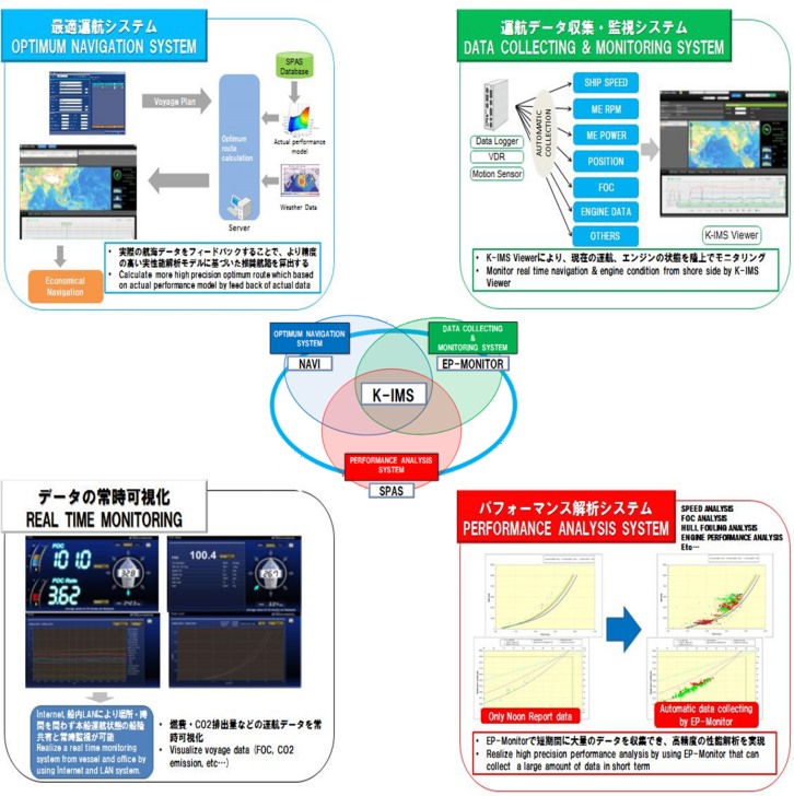 June 28, 2016 “K” Line Group are focusing on maintaining and improving vessel safety operation and environmental preservation since we regards it as first principle to run our business sustainably fulfilling social responsibility. As part of making our principle firm, “K” Line and Kawasaki Heavy Industries, Ltd Group have developed “K-IMS”*1 ; Integrated vessel operation and performance management system. Though “K-IMS” is based on 2 kinds of existing systems equipped our fleet of ; “SPAS”(Ship Performance Analyzing System) which is the electrical AB log and vessel performance analyzed, and “EP-Monitor”(Engine Plant Monitor) which is a remote monitoring system for the vessel engine plant condition, we have made it a new system by integrating developed “EP-Monitor” which has become able to collect and observe all kinds of operation data including navigation data and “NAVI” (Optimum Navigation System) we have newly adopted. Integrating these individual systems enables us to utilize the real-time operation data from vessels, so-called Big data, in mutual systems and also enables us to support vessel operation and manage vessel performance in an easy way by grasp of real-time vessel operating conditions, optimum safety route selection, the latest vessel performance and so on through the new data browsing system we have developed. “K-IMS” and the Big data are managed in cloud system in the shore server and that have various functions such as observing the operating condition of vessels, analyzing the performance of vessels and deciding the safest and lowest cost recommended course based on the analysis result and weather information. “K-IMS” could be shared among operation teams, ship management companies and vessels. Therefore, it will contribute not only to safety navigation and saving fuel cost but also to improve efficient vessel operation and management dramatically. Moreover, we applied for the “Project to support R&D of advanced technology for safe vessels” that Ministry of Land, Infrastructure and Transport invited the other day with Kawasaki Heavy Industries, Ltd and “K” Line Ship Management Co., Ltd. in “K” Line group and our development project “Enhancing analysis accuracy by automatic correction function with hull property model and applying it to safety operation” was adopted because it deserves to the development promotion of “advanced safe vessels” by IoT (Internet of Things) of vessels’ equipment with marine broadband and making use of Big data. By the success of this project, the accuracy of the Optimum Navigation System in the “K-IMS” is much improved and further improvement of ship safety and economic operations by achievement of appropriate navigation route selection is expected. “K” Line will continue to work on environmental preservation and economic operation, keeping to build a reliable safety operation organization by improving the accuracy of optimum navigation system and further developing and utilizing of bottom fouling analysis system, trim optimization system, engine diagnose system on “K-IMS”. *1 K-IMS : Kawasaki - Integrated Maritime Solutions