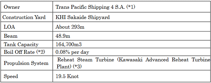 (*2) Boil Off Rate (BOR): Ratio of natural vaporized gas against maximum tank capacity to indicate capability of tank heat-insulation system. (*3) Reheat Turbine Plant: Next-generation LNG carrier propulsion plant of high thermal efficiency and high reliability, incorporating the most advanced materials and control technologies including improvements in steam conditions to raise the thermal efficiency. Kawasaki Kisen Kaisha, Ltd. press release |