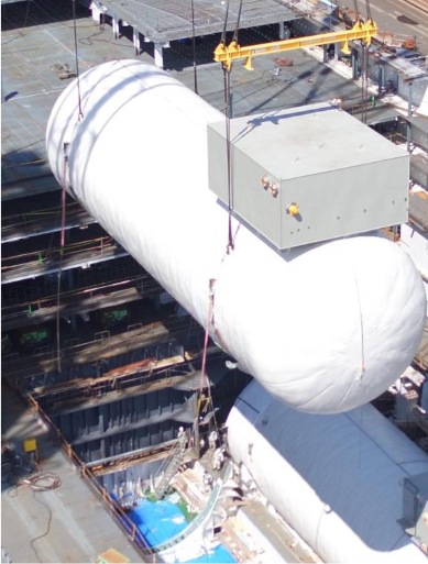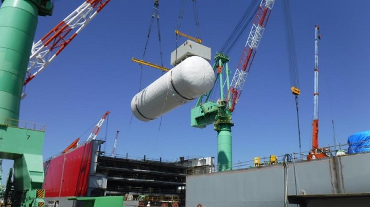 Installation of LNG fuel tanks. Image by Kawasaki Kisen Kaisha, Ltd.