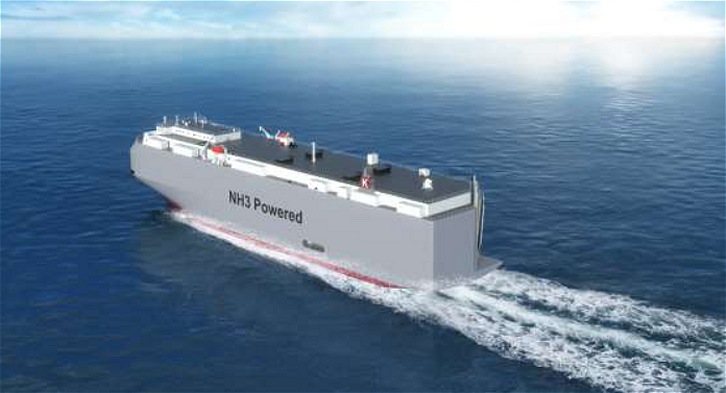 An image of Ammonia Fueled Car Carrier. Image by Kawasaki Kisen Kaisha, Ltd. *1 "K" LINE ENVIRONMENTAL VISION 2050 can be seen in below link: https://www.kline.co.jp/en/csr/environment/management.html#002 Kawasaki Kisen Kaisha, Ltd. press release