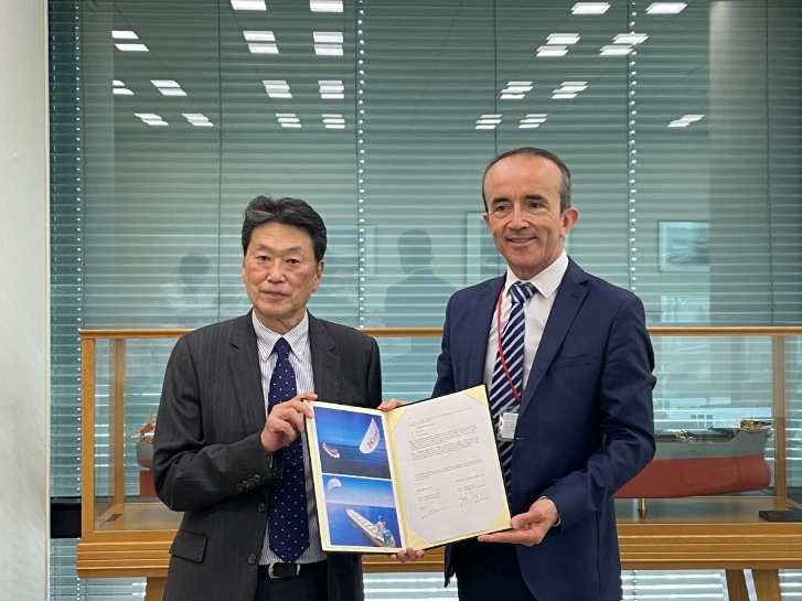 Signing of "Technical Cooperation Agreement". From right: Mr. Vincent Bernatets, Chief Executive Officer, Airseas SAS Ltd. Mr. Daisuke Arai, Managing Executive Officer, Kawasaki Kisen Kaisha, Ltd. Image by Kawasaki Kisen Kaisha, Ltd. Kawasaki Kisen Kaisha, Ltd. press release