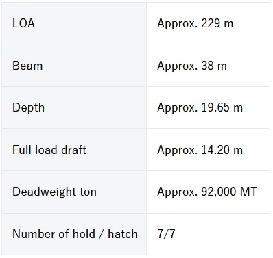 Phase 3 of EEDI*1 will require bunkers (no less than 20,000 deadweight tons), for which construction contracts will be concluded in 2025 or thereafter, to be 30% more efficient in CO2 emissions compared to the EEDI standards. In pursuit of a further reduction in the environmental burden through greater fuel economy, the new ship is expected to achieve a 40% improvement in CO2 emissions efficiency based on NSY's optimal ship development, including the newest main engine and the adoption of energy-saving accessories. Moreover, methanol-ready ship concept which assumes a shift toward methanol, a marine fuel with a low environmental footprint, will be adopted. Outline of vessel
