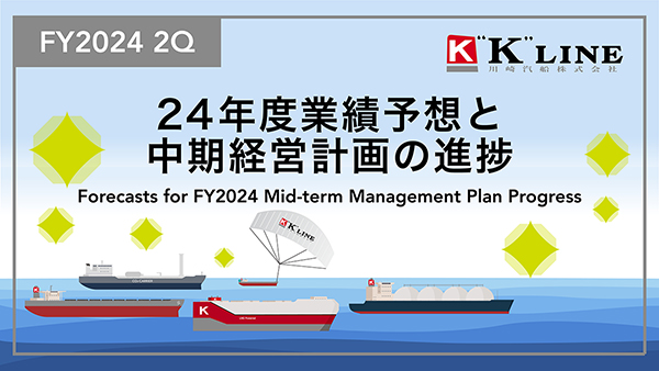 November 5, 2024 Kawasaki Kisen Kaisha, Ltd. ("K" LINE) has posted to its official website a video that explains progress in the implementation of the medium-term management plan and the results in the second quarter of FY2024. The video is also posted on "K" Line With, a video communication site for "K" LINE Group's employees. A video explaining progress in implementing the medium-term management plan and results for the the second quarter of FY2024 "K" LINE provides quarterly updates on the progress of its medium-term management plan through "K" Line With. Based on the FY2024 theme, "Steady Steps Toward Further Growth," in addition to the video outlining the latest performance forecasts, it also focuses on three key aspects of the management plan: business strategy, functional strategy and capital policy. It offers detailed insights into the company's initiatives and progress of the management plan, aiming to share this information with both internal and external stakeholders. The new video features the progress of the business strategy and capital policy under the Medium-Term Management Plan. Regarding the capital policy, the progress of cash allocation from the time of the announcement of the Medium-Term Management Plan up to the present and the thinking behind the cash allocation are illustrated. It shows that "K" LINE has been accumulating the "trust" it needs to realize its corporate principle and vision by consistently working to improve its corporate value, from the "Objective of the "K" LINE Group" to its latest efforts under the Medium-Term Management Plan. Video by K-Line