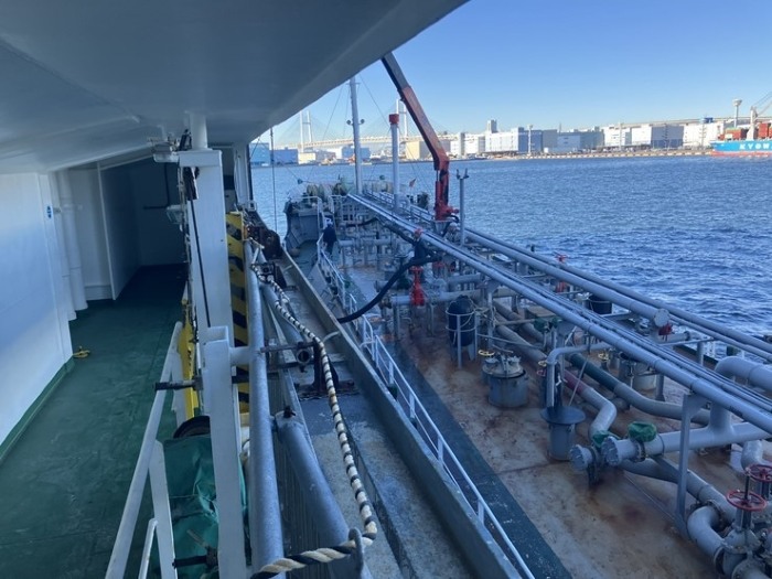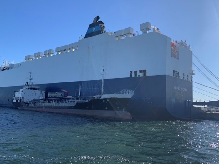 December 19, 2024 Kawasaki Kisen Kaisha, Ltd. ("K" LINE) is pleased to announce that on Monday, December 9, marine biofuel was supplied to VIKING OCEAN, a car carrier it operates, at Yokohama Daikoku C-4 Terminal, a finished-vehicle terminal operated by the "K" LINE Group. This is the first time that "K" Line has supplied biofuel to its operated vessels in Japan. The owner of the vessel is Norwegian based Gram Car Carriers, a long-term partner of "K" LINE. Marine biofuel has the potential to become an environmentally friendly alternative fuel. and the FAME (Fatty Acid Methyl Ester) component of the marine biofuel will be able to reduce CO2 emissions by about 84% in the well-to-wake (from fuel generation to consumption) process without changing current engine specifications.