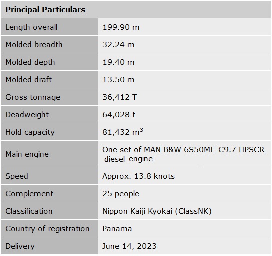 Tokyo - Jun. 16, 2023 Kawasaki Heavy Industries, Ltd. announced that it delivered the bulk carrier LOWLANDS FIDELITY, with a capacity of 64,000 DWT (Kawasaki hull No. 8090, NACKS hull No. 427), for SAKAE SHIPPING S.A. at Nantong COSCO KHI Ship Engineering Co., Ltd. (NACKS), which is located in Nantong City, China and operated jointly with China COSCO Shipping Corporation Limited (China COSCO Shipping).