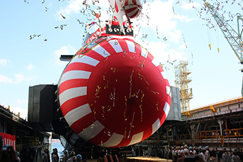 Tokyo - October 17, 2023 Kawasaki Heavy Industries, Ltd. today held a ceremony marking the launch of the submarine RAIGEI at its No.1 Building Berth in Kobe Shipyard which is built for the Japan Ministry of Defense (MOD). The ceremony was attended by a delegation of top MOD officials. The submarine is the fourth Taigei class submarine, and the 31st built at Kawasaki Kobe shipyard after World War II. It provides superior submerged operation and propulsion performance, and has high water pressure resistance by using high strength steel for its pressure hull. Additionally, it has new type of engines. It also has lithium-ion battery systems for increased underwater endurance, a variety of automated systems, improved surveillance capabilities using high-performance sonar, increased stealth capabilities, enhanced safety measures and several facilities for female crew members.