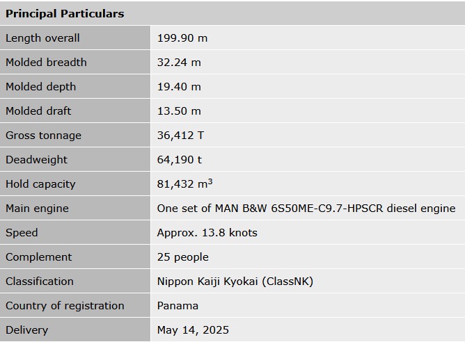 Tokyo, May 14, 2025 Kawasaki Heavy Industries, Ltd. announced today that it delivered the bulk carrier SUMMER QUEEN, with a capacity of 64,000 DWT (Kawasaki hull No. 8101, NACKS hull No. 468), at Nantong COSCO KHI Ship Engineering Co., Ltd. (NACKS), which is located in Nantong city, China and operated jointly with China COSCO Shipping Corporation Limited (China COSCO Shipping).