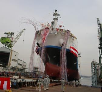 Tokyo - December 11, 2019 Kawasaki Heavy Industries, Ltd. announced today its official naming and launch at Kobe Works of the SUISO FRONTIER (Kawasaki hull no. 1740), the world's first liquefied hydrogen carrier. This vessel was developed to provide a means of transporting liquefied hydrogen at 1/800 of its original gas-state volume, cooled to –253°C, safely and in large quantities over long distances by sea. Kawasaki plans to install a 1,250 m3 vacuum-insulated, double-shell-structure liquefied hydrogen storage tank, currently being manufactured at Harima Works, on the ship and complete the vessel's construction by late 2020. Once complete, the SUISO FRONTIER will be used for technology demonstration testing in Japanese FY 2020 aimed at the establishment of an international hydrogen energy supply chain*1 in which liquefied hydrogen produced in Australia will be shipped to Japan. Hydrogen is gaining popularity as a key next-generation energy source to combat global warming. It does not emit CO2 or other greenhouse gases during use, and expected applications include power generation, fuel cell vehicles and more. With the goal of making hydrogen just as common a fuel source as petroleum and natural gas, Kawasaki joined together in 2016 with Iwatani Corporation (Iwatani), Shell Japan Limited, and Electric Power Development Co., Ltd. (J-POWER) to form the CO2-free Hydrogen Energy Supply-chain Technology Research Association (HySTRA).*2 This organization has, with the support of NEDO,*3 been pursuing technological development aimed at building an energy supply chain enabling economical and reliable sourcing of hydrogen in large volumes. In addition to this latest liquefied hydrogen carrier, a liquefied hydrogen unloading terminal is being built in Kobe City, Hyogo Prefecture, and a brown coal gasification facility is being constructed in Australia. In addition, a consortium*4 comprising Kawasaki, Iwatani and J-POWER along with Marubeni Corporation and AGL Loy Yang Pty Ltd, was formed in 2018 and has received financial support from the Australian and Victorian governments to build a gas refining facility, hydrogen liquefaction & loading terminal and more. Kawasaki is pursuing this hydrogen business as part of its efforts toward sustainable development goals (SDGs), carrying out development projects in every phase including production, storage, transportation, and utilization. In 1981, Kawasaki became the first Asian company to manufacture a liquefied natural gas (LNG) carrier, and now as the world's first company to complete a liquefied hydrogen carrier it will further its efforts toward achieving a Hydrogen Society.