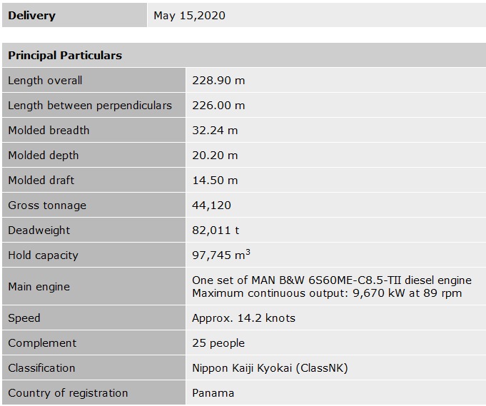 Bulk carrier "Navios Magellan". Image by Kawasaki Heavy Industries. Delivery, principal particulars, and features of the vessel are as described below.