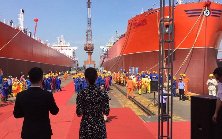 Naming ceremony of MV Balboa and MV Baffin at OuHua shipyard, in Zhoushan China. Image by Torvald Klaveness Second generation combination carriers