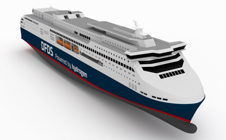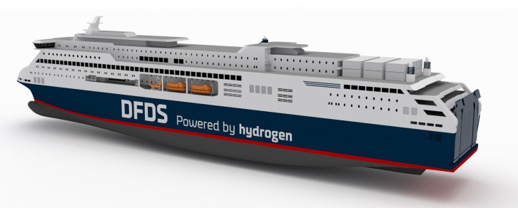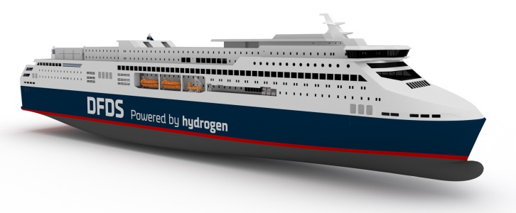 25 November 2020 DFDS and its partners have applied for EU support for development of a ferry powered by electricity from a hydrogen fuel cell which only emits water. Green hydrogen is to be produced by a projected offshore wind energy-powered electrolyser plant in Greater Copenhagen. A group of companies have partnered up in order to develop a 100% hydrogen powered ferry for DFDS’ Oslo – Frederikshavn – Copenhagen route. The ferry will be powered by electricity from a hydrogen fuel cell system that emits only water and can produce up to 23 MW to propel the ferry. “The largest fuel cell systems today produce only 1-5 MW, and the development of such large-scale fuel cell installations for an electric ferry is a monumental task. We can only succeed in partnerships with companies that together can muster some of the globe’s finest expertise in design, approval, building, financing and operation of innovative vessels,” says Torben Carlsen, CEO of DFDS. The partnership committed to achieving this includes DFDS, ABB, Ballard Power Systems Europe, Hexagon Purus, Lloyd’s Register, KNUD E. HANSEN, Ørsted and Danish Ship Finance. “Together, we expect to learn how to make these fuel types and technologies commercially viable, which is key to a transition of the industry to climate neutrality, which is also the ultimate goal of DFDS’ climate plan,” says Torben. The partnership has applied for support from the EU Innovation Fund. As there are no ferries of this kind in the world today, the development of the ferry will also require public involvement. However, if the project develops as projected, the ferry could be in full operation on the route as early as 2027. The hydrogen will be produced locally in Greater Copenhagen based on offshore wind, and the project will investigate how to optimally integrate with the local energy system. The ferry that has the working name Europa Seaways, is designed for 1,800 passengers and has capacity for 120 lorries or 380 cars. Vessel and route details • On board power production PEM Fuel cells • Engine power 23MW • Fuel Compressed hydrogen • Fuel tank capacity 44T • Passenger capacity 1.800 • Trailer & Car capacity 2.300 lanemeters • Route Copenhagen – Frederikshavn – Oslo • Roundtrip time 48 hours • Bunkering interval 48 hours • CO2e/year emission avoidance 64.000 Tons