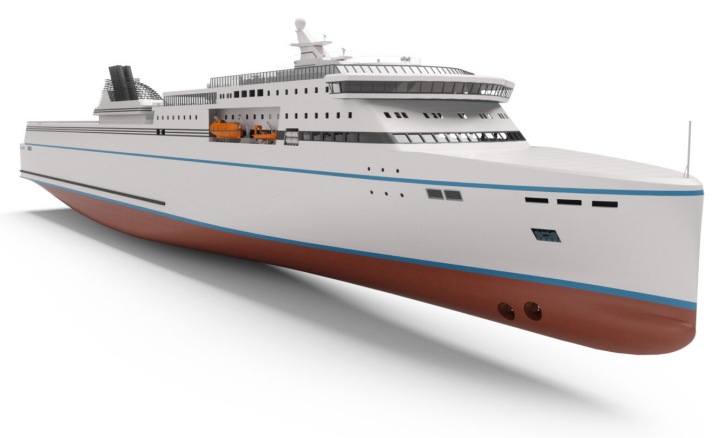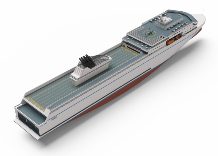 February 04, 2020 The latest design from KNUD E. HANSEN is an innovative 212-metre RoPax ferry that can transport up to 700 passengers and 390 cars. The vessel also boasts 2955 lane metres for trucks and trailers. The layout and access arrangements makes it an ideal choice for the Mediterranean market although it is also well suited for a variety of locations and operating conditions worldwide. The vessel has a service speed of 23 knots and can operate close to optimum engine load, even at slow speeds. The two propulsion engines have a combined power of approximately 25.6 Megawatts and are fueled by marine diesel oil (MDO). For the hotel load two gensets, each abt. 1500 Kilowatts are provided. There are also two tunnel thrusters, each abt. 1500 Kilowatts, located at the bow, which, combined with the twin screw arrangement gives a high degree of maneuverability, a very desirable feature for Med-mooring. There is also a large battery bank to power the vessel while dockside, allowing for zero emissions in port. The vessel features two car decks below the main deck, and two trailer decks above the main deck. The lower decks are accessed via fixed ramps. The main deck gives priority to trucks, which can be easily loaded via an extra-wide stern ramp. The upper trailer decks are accessed via a tiltable/hoistable ramp. There is also a dedicated passenger ramp at the stern with an escalator leading to the accommodation decks. As an option, a hoistable car deck with a capacity of 390 cars can be arranged in the upper garage. Decks 6 and 7 are devoted to passenger accommodation and public spaces, which are well suited for both day voyages and overnight passages. There are a total of 100 twin-occupancy, en suite cabins for passengers. Deck 6 features a self-service restaurant, bar lounge, air-seat lounge, a la carte restaurant, internet café, reception and shopping area. There is an open passenger area on deck 8, with sun shades, a kiosk, and plenty of seating. The wheelhouse is located on Deck 8 along with 17 crew/officer cabins as well as dining and recreation facilities for all staff. 21 double crew cabins are arranged forward in the upper trailer garage. The vessel has two passenger lifts providing access to all vehicle and accommodation decks and one service lift. A service lift connects the galley with the provision store on Deck 2. The vessel is certified as a EuroClass Type A ship and is fully SOLAS compliant. KNUD E. HANSEN aims to achieve the highest level of survivability with strict adherence to Safe Return to Port (SRtP) requirements through the inclusion of redundant, segregated power and propulsion systems as well as passenger safe havens and an auxiliary wheelhouse. This design has been developed completely in-house, by the highly trained and experienced staff of naval architects, marine engineers and designers at KNUD E. HANSEN, who place the utmost importance on safety, efficiency and design ingenuity.