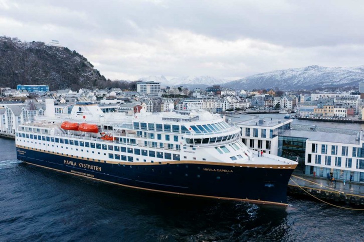 The cruise company Havila Kystruten is celebrating the opening of a breathtaking new 12-day sailing route along the Norwegian coast between Bergen and Kirkenes – and the flagship vessel for this memorably scenic passage, Havila Capella, will be relying upon cutting-edge Kongsberg Maritime (KM) technology for its motive power and propulsion. 14 Dec 2021 As with the other three cruise vessels in the Havila Kystruten fleet, Havila Capella has been designed by HAV Design AS, and deploys integrated, energy-efficient KM solutions which reflect the company’s commitment to operate the most eco-friendly ships in a precious environment of outstanding natural beauty. KONGSBERG will deliver to Havila Kystruten a total of 16 powerful Bergen gas engines, which apply variable turbo geometry to provide an optimal response at all speeds. Bergen gas engines are proven to produce an unparalleled fuel efficiency rate of approximately 50%. The liquid natural gas used in these engines reduces CO2 by 25% and NOX by an astonishing 90%, on top of which the engines are capable of providing up to four hours of zero-emissions running time. “All told, greenhouse gas emissions from our Bergen gas engines are around 20% lower than those from similarly-rated diesel engines,” says Ottar Ristesund, SVP sales, Kongsberg Maritime, “even when we take the methane slip, the unburned fuel, into consideration. They are far cleaner to operate, and users report a reduction of as much as 10% in maintenance costs compared to diesel engines.” Havila Capella’s main propulsion, meanwhile, stems from a KM Azipull-PM (Permanent Magnet) unit with an L-drive configuration. Noted for outstanding hydrodynamic efficiency, the AZP-PM also proffers the advantage of a compact installation footprint as its motor is housed within the mounting flange diameter. Similarly, the KM permanent magnet technology used on Havila Capella’s tunnel thrusters combines space-saving convenience with low-noise, low-vibration and high-performance operation. The tunnel thrusters’ rapid response times to full power increase operability and manoeuvrability. Meanwhile, stays supporting the central shaft are designed to recover some of the swirl energy generated by the propeller, providing additional thrust and improving the energy efficiency of the boat’s hull. Also, wear and tear is substantially reduced as the PM thrusters contain fewer rotational components.