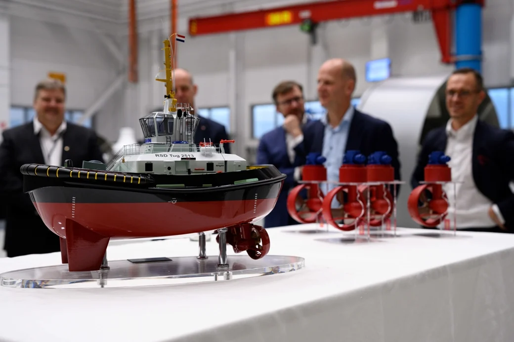 Damen and Kongsberg celebrated the 1500th azimuth thruster supplied to the Dutch ship builder, with thruster number 1500 destined for a Damen ASD tug under construction in Vietnam 11 December 2024 In a ceremony in Rauma, Finland, Damen Shipyards Group and Kongsberg Maritime have celebrated the delivery of the 1500th Kongsberg azimuth thruster to Damen, in a relationship spanning more than 40 years. This latest delivery continues the supply of azimuth thrusters for Damen's wide range of tug designs, operating for its customers in ports across the world. Thruster number 1500 is one of a pair which will be installed on a Damen ASD Tug 2813, currently under construction at Damen Song Cam Shipyard in Vietnam. Martin de Bruijn, Managing Director of Damen Workboats: "We fully appreciate the quality and capability that Kongsberg helps bring to our tugs. We are also grateful for their strong client focus and the way Kongsberg supports Damen's operational excellence initiatives, resulting in shorter lead times and optimised processes".