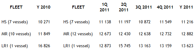 In 2011, the medium size tankers (12 MR type tankers with carrying capacity of 52 thousand tons) achieved an average charter rate of USD 12 882 per day which is an 8.7% increase compared with 2010. In turn the “handy” tankers (7 “handy” tankers with carrying capacity of 37 thousand tons each) achieved an average charter rate of USD 11 216 per day which is a 4.6 % increase on 2010. LSC has performed favourably in comparison with its shipping peers throughout 2011 and during the most recent quarter published - Q4 2011. The only tanker, for which the chartering rate has decreased within the last year, is the tanker “Riga” with carrying capacity of 68 thousand tons. It achieved USD 13,623 per day which is a 28% decrease on 2010. The decreased earnings on the Riga were a consequence of the vessel’s age (built in 2001) and also due to a lack of demand for such sized tankers in the current market. A similar tendency has also been reflected in the earnings of other shipping companies in this particular market sector due to less demand for long range product movements especially from eastern refineries to western economies. Paul Thomas, member of the Management Board of LSC observes that in recent years there has been a decline in demand for petroleum products, especially in the more developed Western economies, as well as an increase in the number of product tankers as a consequence of over ordering during the boom years of shipping. This has resulted in negative earnings for ship-owners. However the current management has succeeded in achieving an increase in chartering rates on a year to year basis. LSC has been able to improve earnings due to the shipping professionalism of members of the management board and all the dedicated professional staff of Latvian Shipping Company. Paul Thomas, member of the Management Board of LSC stresses: “The new management board is ensuring the company follows a strict policy of corporate governance. There is no longer any manipulation of chartering rates and the services of dishonest brokers have completely stopped”. Currently there is significant legal action being held in the UK courts in order to recover losses of USD 135 million caused by fraudulent charter schemes prior to and including 2005. LSC hopes to regain this money as a result of these legal proceedings in the next few years. Paul Thomas, member of the Management Board of LSC in the interview with Latvian Business daily Dienas business disclosed that in the short term the company will not be able to pay dividends as it has an unaudited consolidated loss of LVL 25 million in 2011.