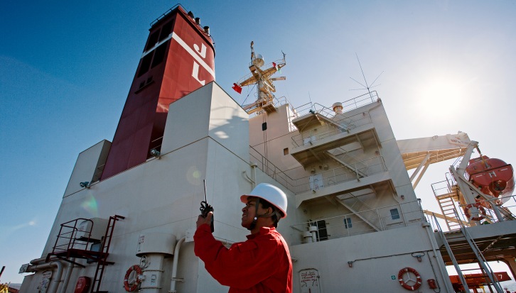 A photo of a crew member on the deck of a J. Lauritzen vessel J. Lauritzen A/S press release