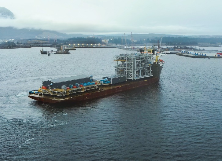 Mar 11, 2022 A critical piece of infrastructure more than 10 storeys high has arrived at the LNG Canada project site in Kitimat, B.C., in the traditional territory of the Haisla Nation, marking another phase in construction activities at Canada’s first major liquified natural gas facility. Measuring 35 metres in height and weighing 4,618 metric tonnes, the inlet facilities module will serve as the entry point for natural gas delivered to the LNG Canada site via the new Coastal GasLink (CGL) pipeline. One of more than a dozen highly advanced process modules built for the LNG Canada facility, and the first to arrive in Kitimat, the new inlet facilities module will receive natural gas directly from the CGL pipeline and evenly distribute it at a constant flow to treatment facilities and processes, including liquification and storage, before it is loaded into specialized carriers for marine transport, explains LNG Canada Senior Construction Engineer Gerard Bowers. It will then be delivered to markets that need low-carbon, made-in B.C. liquified natural gas to replace other energy sources such as coal. But first things first: Over several days, Bowers says, the inlet facilities module will be carefully moved from LNG Canada’s new material offloading facility at the Port of Kitimat to its place at the main LNG processing site; this will require the help of large self-propelled modular transporters, which will slowly move the module along the project site’s purpose-built haul road that is three kilometres long and 30 metres wide. The module will then be placed on a foundation specifically designed to accommodate its dimensions, joining several other large pieces of LNG infrastructure installed in recent months. "Taking delivery of our inlet facilities module represents another key milestone for our project, which is now approaching 60 percent completion," says LNG Canada CEO Peter Zebedee. "This is a very important year for us, with a pace of construction not seen previously. Thanks to thousands of highly skilled Canadians working at our site in Kitimat, we’re making excellent progress as we advance through construction and prepare for 40 years of safe operations. We remain committed to delivering our first cargo by the middle of this decade."