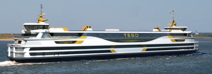 It is planned that the ferry will operate mainly on natural gas stored in two batteries of compressed natural gas (CNG) bottles installed on the top deck. Electric batteries will also form an integral part of the advanced energy management system. In addition to this, with over 700m² of solar panels, the ferry will have power available from the sun in the sunniest region of The Netherlands. TESO has a long standing relation with LR which started with the plans for building the Schulpengat in 1989. After that, TESO decided to contract LR for their ISO certification. In 2003, the engineering of the ferry Dokter Wagemaker started and because of the previous good experience and relationship, this contract was also awarded to LR. Now, during design, plan approval and building of the innovative Texelstroom TESO looked for a partner to support their plans. Mr. Cees de Waal, managing director of TESO, is confident that with LR’s background knowledge of the TESO philosophy, that safety and reliability are the most important goals to achieve, in addition to the long standing good relationship between both sides, TESO has again chosen LR to be their classification society. The design of the ferry was supported by the European Union’s ‘I.Transfer’ Program, which aims to make ferry transport more freely accessible and sustainable, and encourage more people to travel by water. As well as the innovative power arrangements, the design incorporates features important to ferries operating in the area. The vessel is to be ice class, with a strengthened hull in case of winter ice. Additionally, LR’s notation for Passenger and Crew Accommodation Comfort (PCAC) will help ensure a safe and comfortable journey for all. John Hicks, VP for Global Passenger Ships, Lloyd’s Register said: "Winning the contract for this highly innovative ferry demonstrates LR’s ability to help shipowners manage the introduction of new technology with confidence. Our teams in Spain and the Netherlands helped the client in delivering solutions to the engineering and regulatory challenges involved in this exciting contract. This is a robust design with the ability to operate in safety and efficiency in all conditions." Operational details • It is planned that the ferry will sail on gas as much as possible. And with abundant installed power under normal conditions, with only the dual fuel engines, the ferry will meet maximum service speed requirements if necessary. • The dual fuel engines will start in the diesel mode, but change over to dual fuel after a couple of minutes. • The ferry will operate from 6.00 till 22.00 constantly on an hourly service from both sides between Den Helder and Texel. The actual sailing time is about 20 minutes per voyage. Lloyd's Register press release |