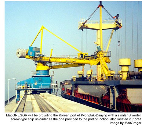 Next year cement unloading at the Korean port of Pyongtak-Danjing will be smoothed by a Siwertell mechanical screw-type shipunloader from MacGREGOR to ensure efficient, reliable and environment-friendly operations
