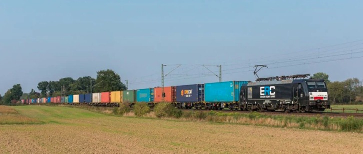 Maersk's block train intermodal service moving its first 37 x 40 containers in 32 days.. Image by A.P. Moller - Maersk Group. A.P. Moller - Maersk Group, press release