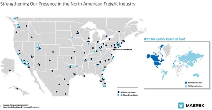 Image by A.P. Moller - Maersk About the transaction The transaction price is USD 1.68bn equivalent to an enterprise value of USD 1.8bn post IFRS-16 lease liabilities, reflecting a pre-synergy EV/EBITDA multiple of 13.8x based on an estimated post IFRS-16 EBITDA of approximately USD 130m for full-year 2021. The acquisition is subject to regulatory review and approval which is expected to be obtained by Q2 2022. Both companies will operate as independent businesses and run their operations as usual until that time. About Pilot Freight Services Established in 1970 and headquartered in Glen Mills, Pennsylvania USA, Pilot is a leading U.S.-based last mile and full mile solutions provider with 87 locations throughout North America, and offices in Spain and The Netherlands with more than 2,600 full-time employees and a flexible pool of employees to support seasonal volume increases. The company specializes in Business-to-Consumer (B2C) home delivery for big and bulky goods (>70 kgs/155 lbs, non-conveyable) in the U.S. and Business-to-Business (B2B) that is high value, time sensitive freight, requiring high levels of service with last mile and full mile solutions, including in-home installations. Pilot Freight Services About A.P. Moller - Maersk A.P. Moller - Maersk is an integrated container logistics company working to connect and simplify its customers' supply chains. As the global leader in shipping services, the company operates in 130 countries and employs approximately 95,000 people. Pilot Network locations