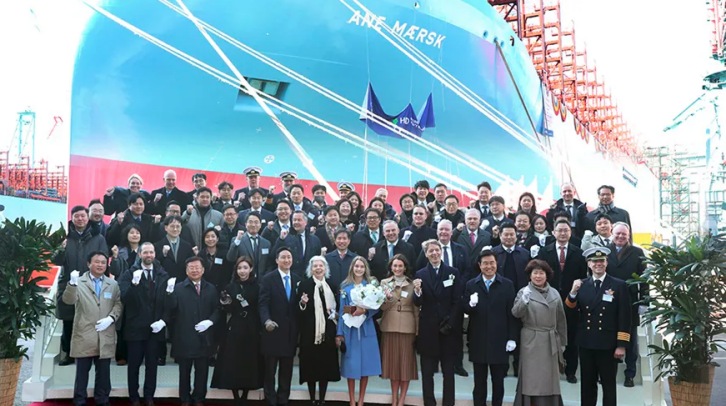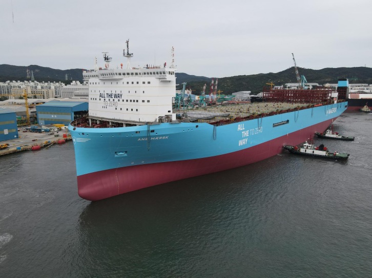 Ulsan, South Korea - 26 January 2024 The world's first large methanol-enabled container vessel has been named "Ane Maersk" at a ceremony in the shipyard of HD Hyundai Heavy Industries (HD HHI) in Ulsan, South Korea. The vessel is named after Ane Maersk Mc-Kinney Uggla, the Chair of the A.P. Moller Foundation and A.P. Moller Holding. Ane's eldest granddaughter served as godmother and christened the vessel by breaking a champagne bottle over the bow. "Ane Maersk" is the first of Maersk's 18 large methanol-enabled vessels, that will be delivered between 2024 and 2025. It is the world's second methanol-enabled container vessel. In the beginning of February, it will enter service on the ae7 string connecting Asia and Europe, marking a significant milestone in the company's commitment to pioneering low-emissions shipping solutions. The vessels in the new series have an industry-first innovative design with the bridge and accommodation placed at the very front of the vessel, which ensures fuel efficient operations. Vincent Clerc, Chief Executive Officer of A.P. Moller-Maersk: "This series of vessels will have a transformative impact on our ambition to progress on our industry-leading climate ambitions. It is a visual and operational proof of our commitment to a more sustainable industry. With "Ane Maersk" and her sister vessels we are expanding our offer to the growing number of businesses aiming to reduce emissions from their supply chains." "Ane Maersk" will begin her maiden voyage on green1 methanol and Maersk continues to work diligently on 2024-2025 sourcing and bunkering solutions for its methanol-enabled vessel fleet. (1) Maersk defines "green fuels" as fuels with low to very low GHG emissions over their life cycle compared to fossil fuels. Different green fuels achieve different life cycle reductions depending on their production pathway. By "low" we refer to fuels with 65-80% life cycle GHG reductions compared to fossil fuels. This covers, e.g., some biodiesels. "Very low" refers to fuels with 80-95% life cycle GHG reductions compared to fossil fuels.