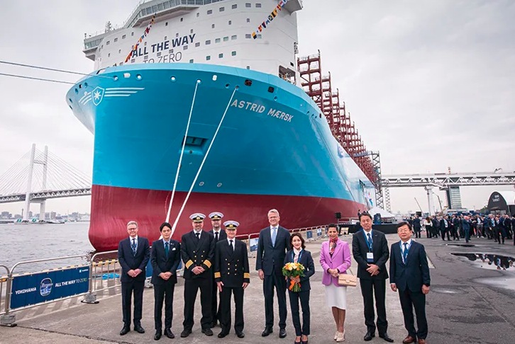 Yokohama, Japan - 4 April 2024 In a ceremony held in Yokohama, Japan today, the world's second large methanol-enabled container vessel was named "Astrid Maersk". Mrs. Liza Uchida, spouse of Nissan CEO Makoto Uchida served as godmother and christened the vessel. "Astrid Maersk" is the second of Maersk's 18 large methanol-enabled vessels, scheduled for delivery between 2024 and 2025. This new fleet series is expected to significantly contribute to Maersk's net-zero targets and support customers in achieving their decarbonization goals. Vincent Clerc, Chief Executive Officer of A.P. Moller - Maersk: "We are truly excited to welcome "Astrid Maersk" to our new fleet capable of sailing on green methanol. With this vessel and her sister vessels, Maersk is taking important steps on the journey towards the energy transition of ocean transport. No one can do this alone. To enable green supply chains and accelerate shipping's move towards net-zero emissions, continuous courageous action by dedicated customers like Nissan, industry peers, and suppliers is essential. Importantly, to maintain momentum, there is a need for global regulations from the International Maritime Organization (IMO) to close the price gap between fossil and green fuels to secure a level playing field." The name giving ceremony took place in Daikoku Pier Cruise Terminal in Yokohama city, where public audience could also register and get onboard for a vessel visit. Toru Nishiyama, Managing Director of Maersk Northeast Asia: "Yokohama holds a special place in Maersk's history. Since the first vessel call at the Port of Yokohama a century ago, we have collaborated with our many partners and stakeholders in the city. Today's ceremony symbolizes our enduring relationship with Yokohama and Japan as a whole. As we embark on our 'All the Way to Zero' journey, the support and partnership of the Japanese community are invaluable. We will continue to prioritize our efforts to minimize the environmental and climate impact of our activities while fostering economic growth and prosperity in the region." Maersk has set a science-based Net-Zero greenhouse gas emissions target for 2040 across the entire business and has also established tangible and ambitious near-term targets for 2030 to ensure significant progress. The company will equip 25 of its container vessels with dual-fuel engines capable of sailing on green methanol. Among these vessels are the feeder vessel "Laura Maersk", deployed in the intra-Europe trade in September 2023, and “Ane Maersk”, a large 16,000 TEU green fuel-powered container vessel deployed in the Asia-Europe trade in January 2024. Maersk collaborative approach with the City of Yokohama is dedicated to the development of a green methanol bunkering infrastructure in Yokohama, further solidifying Maersk's commitment to reducing emissions and promoting eco-friendly practices within the maritime industry.
