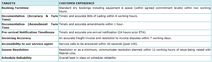 Maersk Line has now set out to establish a ‘customer charter’ which articulates the minimum service quality that ALL our customers will benefit from. Consequently we have defined an aspirational performance target for each of the customer interactions in our Customer Charter.