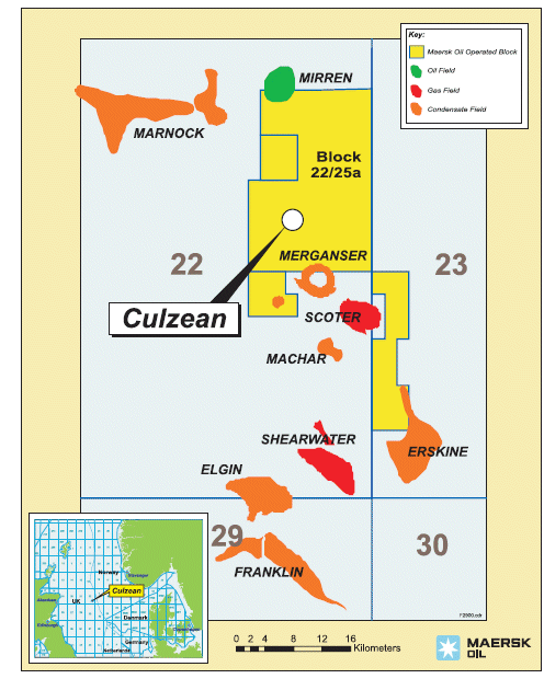 The Maersk Oil operated well was drilled in the UK sector of the Central North Sea approximately 145 kilometres East of Aberdeen to verify the extension of the original Culzean discovery well (22/25a -9z), announced in 2008.