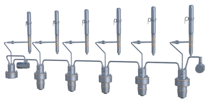 Image by MAN Energy Solutions. Other features of common-rail 2.2 include: • an increased system pressure up to 2,200 bar to comply with future emission limits while offering the best possible fuel consumption; • an electronically-controlled injector including an accumulator enabling the greatest flexibility with multiple injections and maximum stability during an injection event; • a reduced modular design for simplified service and allowing the maximum free space for engine maintenance; • a platform for a broad variety of fuels including HVO and FAME; • its proven technology with all safety functions from CR 1.6 implemented; • delivers lower fuel-oil consumption, soot emissions, mechanical load to the engine (due to the reduced pressure-rise gradients in the cylinder), vibration and noise. MAN Energy Solutions, Press Release