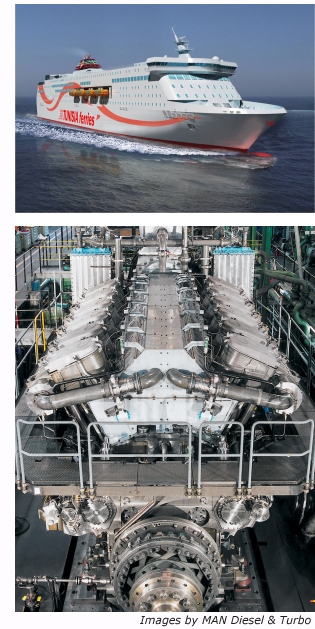 • integrated self-diagnosis functions • maximum reliability and availability • simple use and diagnosis • quick exchange of (plug-in) modules • trouble-free and time-saving commissioning NOx-eliminating features of the 48/60CR Retarded injection timing delays combustion-heat release, thus lowering combustion chamber temperature peaks and NOx emission. A new piston design provides a higher compression ratio and faster temperature reduction after ignition, further reducing NOx formation. Variable valve timing enables variations in the opening and closing of the inlet valves, thus providing an additional contribution to the minimisation of the SFOC versus NOx emission trade-off. Propeller The RoPax ferry is a twin-screw vessel and the order includes two CP propellers that will be delivered by ALPHA. The specified propellers are MAN’s Alpha CP Propellers type VBS1800-ODF, with a propeller diameter of 5,600 mm and a power density corresponding to 1,169 kW/m2. Each propeller is driven by a twin-in/single-out gearbox and will be powered by two of the 12V48/60CR main-engines. The ferry is designed with two separate engine-rooms with the propeller shaft-lines having different lengths of well over 40 metres. The final propeller-blade design will be hydrodynamically optimised and carefully balanced with a special focus on propulsion efficiency, low noise, and cavitation levels. The total weight of the propeller equipment amounts to almost 300 tons. Propulsion control and manoeuvring will be managed by MAN’s Alphatronic PCS system courtesy of a complete setup with control consoles in the engine-control room, the forward bridge and the bridge wings. About COTUNAV La Compagnie Tunisienne de Navigation – “COTUNAV”– was established in 1959, under the guardianship of The Tunisian Ministry of Transport. Its current president is Ali Khalifa. COTUNAV’s primary interests concern the transport of passengers on regular routes from Tunis to Marseille and Genoa aboard the company’s existing fleet of car ferries. Another major interest of the Tunisian company is its existing RoRo cargo-vessel fleet that conducts container and truck transport between Tunis, Marseille, Genoa, Naples, Livorno and Barcelona. Solid-bulk transport on routes encompassing West Africa and the Middle East is another significant activity. About DSME Daewoo Shipbuilding & Marine Engineering Co., Ltd. (DSME) was established in 1973 at Okpo Bay, Geoje Island, in south-eastern Korea and has since developed into one of the world's premium shipbuilders. DSME’s primary focus is on the commercial, naval, and offshore and plant marine-segments, and it produces container ships, passenger ships, LNG/LPG carriers, submarines, naval destroyers and oil rigs, among many other types of vessel. The company has 31,000 employees and recorded total sales of US $10 billion in 2008. MAN Diesel & Turbo, Press Release |