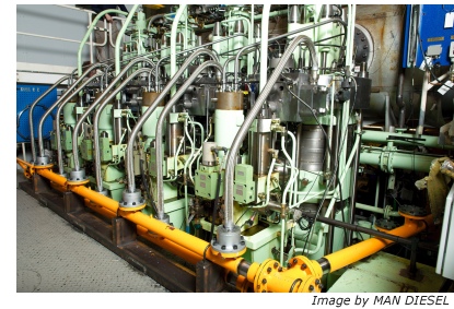 MAN Diesel & Turbo sees significant opportunities arising for gas-fuelled tonnage as fuel prices rise and modern exhaust-emission limits tighten. Indeed, previous research indicates that the ME-GI engine, when combined with exhaust gas recirculation (EGR) and waste-heat recovery (WHR) technologies, delivers significant reductions in CO2, NOx and SO x emissions fulfilling Tier-II and Tier-III regulations MAN Diesel & Turbo predicts a broad, potential market for its ME-GI engine, extending from LNG and LPG carriers to other oceangoing vessel segments such as containerships as well as ships plying a fixed trade. As such, the ME-GI engine represents a highly efficient, flexible, propulsion-plant solution. Considered timing “The unveiling of the ME-GI engine is MAN Diesel & Turbo’s response to current market conditions and the large audience in Copenhagen is proof of the great interest in this propulsion solution,” said MAN Diesel & Turbo’s Søren H. Jensen, Vice President and Head of Research & Development, Marine Low-Speed He continued: “The ME-GI engine is the culmination of years of research and development and we consider the timing of its release to market to be optimal. We see many potential applications for the ME-GI’s increased flexibility and greater control both within the LNG sector and generally within marine transportation, as operators seek to control costs and emissions.” Jensen concluded: “With the addition of the ME-GI engine to its existing portfolio, MAN Diesel & Turbo now offers the two-stroke market’s most comprehensive array of prime-mover solutions all the way up to 98-bore.” Technical details MAN B&W ME-GI (Gas Injection) two-stroke engines possess economical and operational benefits compared to other, low-speed engine plants, irrespective of ship size. Based on the successful, electronically controlled ME heavy-fuel-burning diesel engines, the ME-GI design accommodates natural gas and liquid fuels. Dual-fuel operation requires the injection of both pilot fuel-oil and gas fuel into the engine’s combustion chamber via different types of valves arranged in the cylinder head. The ME-GI engine head is fitted with two valves for gas injection and two for pilot fuel. The pilot-oil valve is a standard ME fuel-oil valve. MAN B&W ME-C and ME-GI engines are broadly similar and share the same efficiency, output and dimensions. In comparison, the ME-GI engine’s key components are its modified exhaust receiver, modified cylinder cover with gas-injection valves and gas-control block, an expanding top gallery platform, high-pressure fuel-supply pipes, and mounted gas-control units. The ME-GI engine contains many inherent benefits, including: • low operational cost • low investment cost • flexible burning of HFO and gas • clean exhaust gas • conventional MAN B&W two-stroke technology: - high reliability - low maintenance • simple technology • maximum engine-room safety • two-stroke dual-fuel experience since 1994 • proven technology. MAN Diesel & Turbo, Press Release |