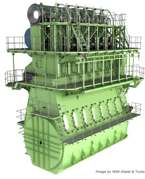 “In recent times, the market has sought to optimise propulsion efficiency through using larger propellers and lower-speed engines,” said Ole Grøne, Senior Vice President Low Speed Sales and Promotions, MAN Diesel & Turbo. He continued: “Fuel optimisation has also become a priority. We find that large merchant vessels are compatible with larger-diameter propellers following an adaptation of the aft hull design, paving the way for higher efficiencies. The ultra-long-stroke G-type engine ably satisfies this trend.”