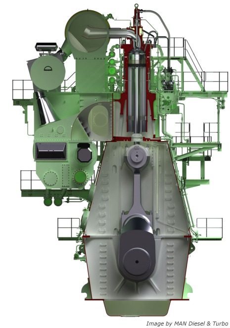 Following from the market development towards the further optimisation of large container ships’ propulsion efficiency, MAN Diesel & Turbo has announced two significant additions to its engine programme. The G95ME-C9.2 and S90ME-C10.2 units rank among the largest and most powerful engines the company has ever released to the marine, two-stroke market.