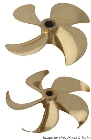 Representing DMMP, Executive Vice President Chen Baoqi said: “Entering into this agreement with MAN Diesel & Turbo, ensures and strengthens DMMP’s leading position in the market place and delivers the most efficient and environmentally friendly propeller solutions to our shipowners.” Torben Johansen, Head of Propeller & Aft Ship, MAN Diesel & Turbo, said: “This agreement will greatly help us to penetrate the FP propeller market with our highly efficient Kappel design principle as DMMP is among the major suppliers of large-scale propellers for Chinese shipbuilding.” New order MAN Diesel & Turbo subsequently announced that DMMP has signed a Kappel design propeller contract with Xiamen Shipbuilding Industry Co. Ltd for three + 8500 ceu PCTC (Pure Car/Truck Carrier) car carriers, the largest of their kind in the world. The shipowner is Höegh Autoliners, the leading global provider of Ro/Ro vehicle transportation services. Frederikshavn reports that tank tests on different propeller configurations displayed the Kappel design’s superior efficiency compared to other propellers. DMMP DMMP is the largest plant specializing in the manufacture of marine propellers in China and has nearly fifty years of production experience. The company delivers about two hundred propellers annually to a broad range of global shipowners. Kappel Taken over by MAN Diesel & Turbo in 2012, Kappel propeller blade designs offer fuel savings of up to 6%, compared to conventional designs. Notably, this improvement in efficiency is related to blade design alone. Compared to a conventional design the Kappel propellers have shown lower pressure impulses which can be utilized for bigger and more efficient propellers because of the reduced clearance between hull and propeller tip. MAN Alpha propellers (FPP scale 1:28 models shown) with four-bladed conventional blade design (right) and five-bladed with Kappel tip fin design (left). As with the CPP range, the MAN Alpha FPPs also cover a power range of 4 MW and upwards. MAN Diesel & Turbo, Press Release |