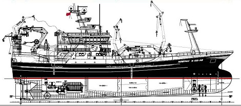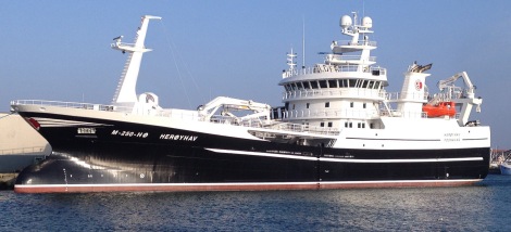 The ‘Herøyhav’ was ordered by the Ervik family of Fosnavåg, Norway in January 2012 and replaces a previous vessel of the same name from 1999. The new fishing vessel has been updated with modern equipment that provides flexible and economic operation, both for pelagic trawling and purse-seine fishing in the Atlantic adjacent to Norway’s coast. The propulsion package consists of a MAN 9L27/38 engine and a two-speed reduction gear that drives a MAN Alpha 4,200 mm diam. ducted propeller. The propeller nozzle is a customised MAN Alpha AHT design. MAN Diesel & Turbo also supplied its Alphatronic 2000 propulsion control system, including the ECO Speed Pilot for optimal voyage planning and speed setting. Hybrid flexibility A hybrid configuration is a fuel-efficient and flexible power-and-propulsion system with high redundancy. Hybrid propulsion systems are a combination of electric propulsion and diesel drive, and enable ships with variable power requirements to run at high propeller efficiency. A large number of operational modes are available, which enable the engine and propeller to run optimally over a wider power range. The Herøyhav’s propulsion system has several power modes: both diesel-mechanical, diesel-electrical and hybrid combinations. Its auxiliary generators can deliver 1,500 kW auxiliary power to the hybrid system, which – in combination with the main-engine power of 3,285 kW – offer a total propulsion output of 4,785 kW (~ 6,500 hp) for trawling or full-speed steaming. The following ship speed / power modes were verified during sea trials: • 11.6 knots – 1,400 kW (diesel-electric, variable propeller speed) • 14.0 knots – 2,400 kW (diesel-electric, fixed propeller speed) • 15.5 knots – 3,285 kW (diesel-mechanical) • 16.6 Knots – 4,785 kW (diesel-mechanical + electric boost) Environment – no oil to water